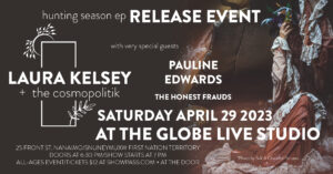 Hunting Season will launch on April 29, 2023. The special release event will be marked with a celebratory performance from Laura and her band The Cosmopolitik at the historic Globe Hotel in Nanaimo. Pauline Edwards (Vancouver) and The Honest Frauds (Nanaimo) will also appear on the bill.