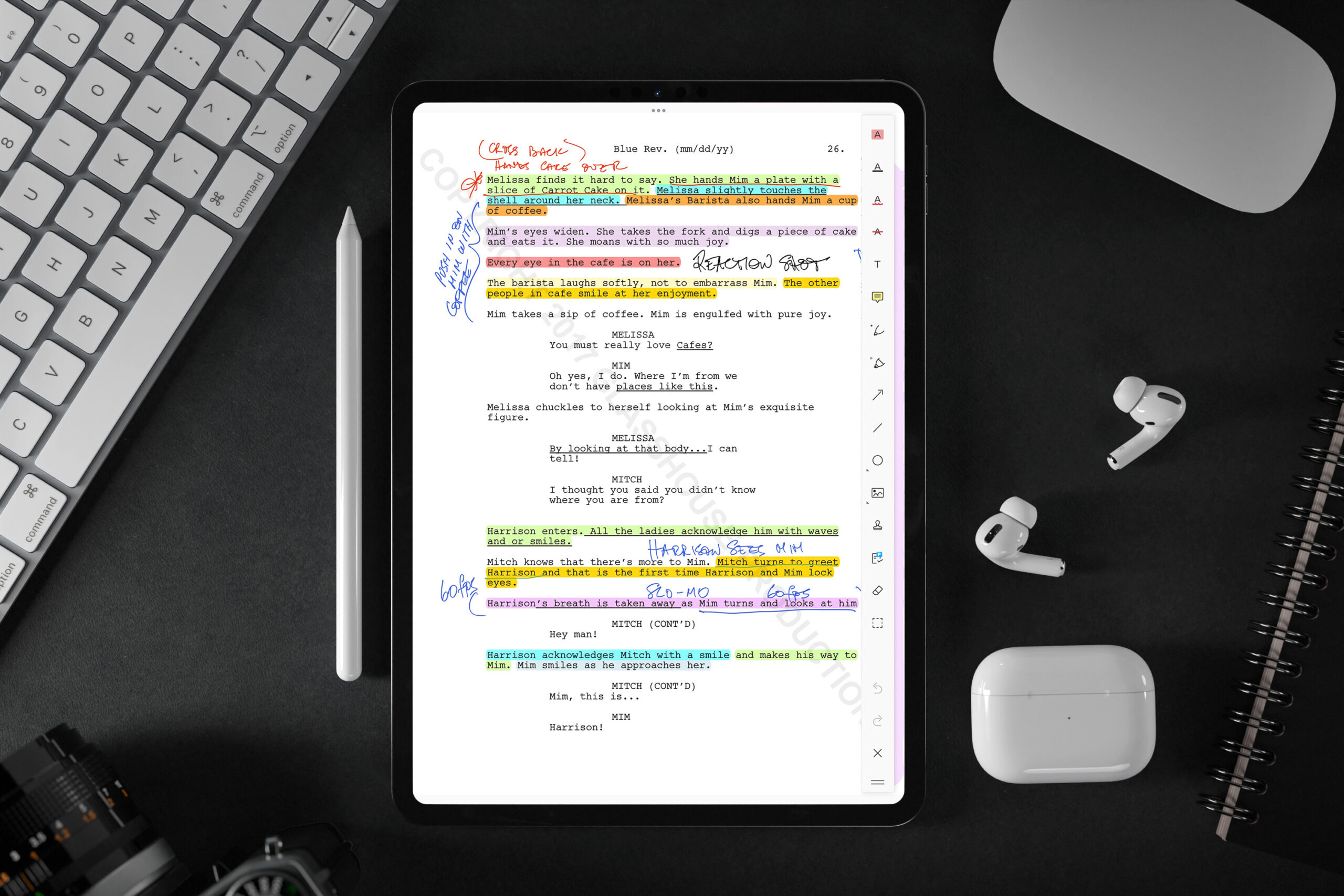 With 9 different features, Scriptation can elevate your script taking notes and meetings to a new level. With the ability to transfer notes from previous revisions, it can save time from copying the same notes over and over again. Cast and crew from productions such as The Flight Attendant, Outer Banks, The Walking Dead, and Grown-ish have used Scriptation on their productions and trust it.