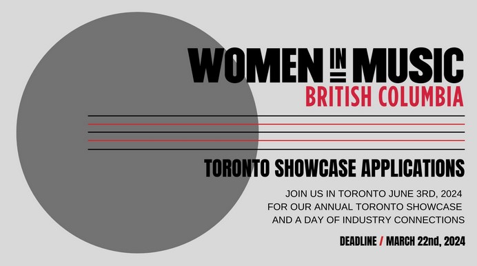 Applications are now open for Women in Music BC’s curated Toronto Industry Showcase. In addition to being showcased, selected applicants will receive travel honorariums, and attend one-on-one meetings with industry delegates.