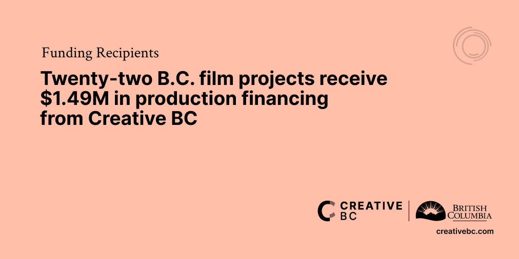 Vancouver, B.C. (August 19, 2024) – Today, Creative BC announces the second intake of successful producers that will receive production financing in 2023/24. Twenty-two projects will receive grants for production and post production phases for their long form scripted feature length films, documentaries, and series projects. With grants ranging from $20K to $200K each, this is the fourth round of filmmakers funded through the Production Program (the Program). The Program was launched in 2020 with support from the B.C.’s Domestic Motion Picture Fund (the Fund). Before this provincial investment, there was no production funding available in B.C. since 2003. This made it challenging for B.C. creators to secure private sector financing and federal funding.