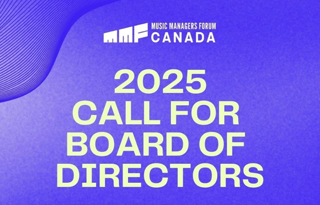 Nominations are now open until September 17, 2025 for the 2025 MMF Canada Board of Directors. Self-nominations are welcome from all eligible applicants, including managers and self-managed artists of all experience levels, from across Canada.